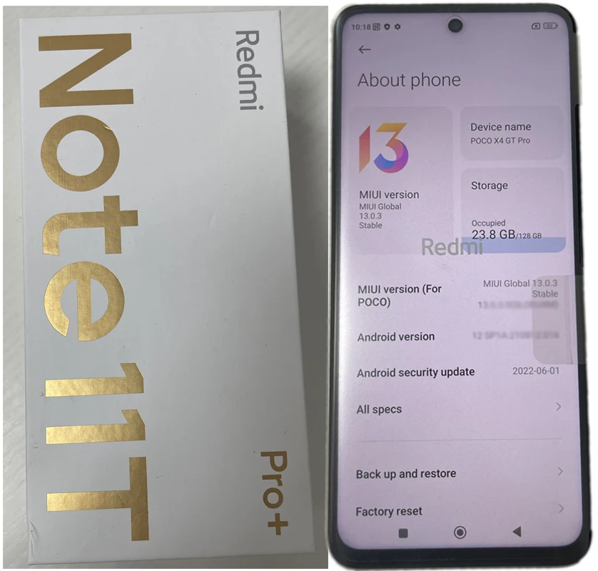 - Model: Redmi Note 11T Pro
